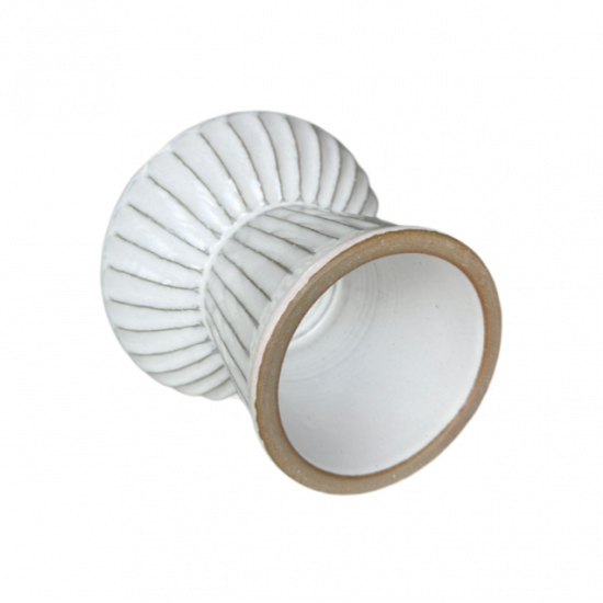 作家の泰裕さんがろくろを回して作られた二つとして同じものはない特別な作品です。同じ形、サイズのものを作るためには鍛錬が必要なろくろ成形。熟練した職人の手作業によって、一つひとつ想いを込めて作られた器には、味わい深さやその風合いに魅力を感じます。さらに、日本の伝統的な「しのぎ技法」を使ってデザインされたしのぎ模様は、釉薬をかけることで色の濃淡が生まれ、惹きつけられるような表情になります。